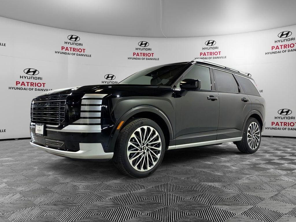 Palisade Calligraphy, 4D Sport Utility, V6, 8-Speed Automatic, AWD, Abyss Black Pearl, Black Leather, 14 Speakers, Apple CarPlay & Android Auto, Auto High-beam Headlights, Auto-leveling suspension, Exterior Parking Camera Rear, Four wheel independent suspension, Fully automatic headlights, Genuine wood console insert, Genuine wood dashboard insert, Heads-Up Display, Heated front seats, Heated rear seats, Heated steering wheel, Memory seat, Navigation System, Power Liftgate, Power moonroof, Power passenger seat, Premium Nappa Leather Seat Trim, Radio: Infotainment Navigation System, Rain sensing wipers, Reclining 3rd row seat, Speed control, Ventilated front seats, Ventilated rear seats, Wheels: 21" x 8.5J Alloy, 3rd row seats: split-bench, 4-Wheel Disc Brakes, ABS brakes, Air Conditioning, Alloy wheels, AM/FM radio: SiriusXM, Audio memory, Auto-dimming door mirrors, Auto-dimming Rear-View mirror, Automatic temperature control, Brake assist, Bumpers: body-color, Cargo Blocks, Cargo Cover, Cargo Net, Carpeted Floor Mats, Compass, Delay-off headlights, Driver door bin, Driver vanity mirror, Dual front impact airbags, Dual front side impact airbags, Electronic Stability Control, First Aid Kit, Front anti-roll bar, Front Bucket Seats, Front Center Armrest, Front dual zone A/C, Front reading lights, Garage door transmitter: HomeLink, Heated door mirrors, HVAC memory, Illuminated entry, Knee airbag, Leather steering wheel, Low tire pressure warning, Occupant sensing airbag, Outside temperature display, Overhead airbag, Overhead console, Panic alarm, Passenger door bin, Passenger vanity mirror, Power door mirrors, Power driver seat, Power steering, Power windows, Radio data system, Rear air conditioning, Rear anti-roll bar, Rear audio controls, Rear reading lights, Rear side impact airbag, Rear window defroster, Rear window wiper, Remote keyless entry, Roadside Assistance Kit, Security system, Split folding rear seat, Spoiler, Steering wheel mounted audio controls, Tachometer, Telescoping steering wheel, Tilt steering wheel, Traction control, Trip computer, Turn signal indicator mirrors, and Variably intermittent wipers.