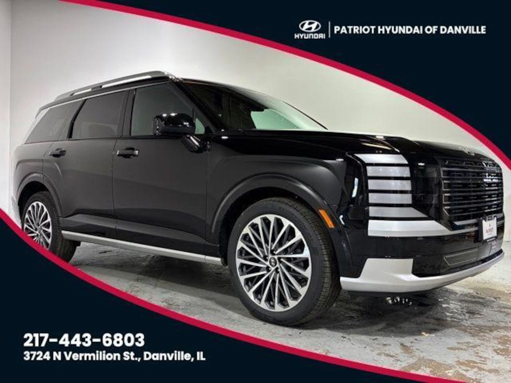 2026 Hyundai Palisade Calligraphy Abyss Black Pearl AWD 8-Speed Automatic V6 Palisade Calligraphy, 4D Sport Utility, V6, 8-Speed Automatic, AWD, Abyss Black Pearl, Black Leather, 14 Speakers, Apple CarPlay & Android Auto, Auto High-beam Headlights, Auto-leveling suspension, Exterior Parking Camera Rear, Four wheel independent suspension, Fully automatic headlights, Genuine wood console insert, Genuine wood dashboard insert, Heads-Up Display, Heated front seats, Heated rear seats, Heated steering wheel, Memory seat, Navigation System, Power Liftgate, Power moonroof, Power passenger seat, Premium Nappa Leather Seat Trim, Radio: Infotainment Navigation System, Rain sensing wipers, Reclining 3rd row seat, Speed control, Ventilated front seats, Ventilated rear seats, Wheels: 21" x 8.5J Alloy.